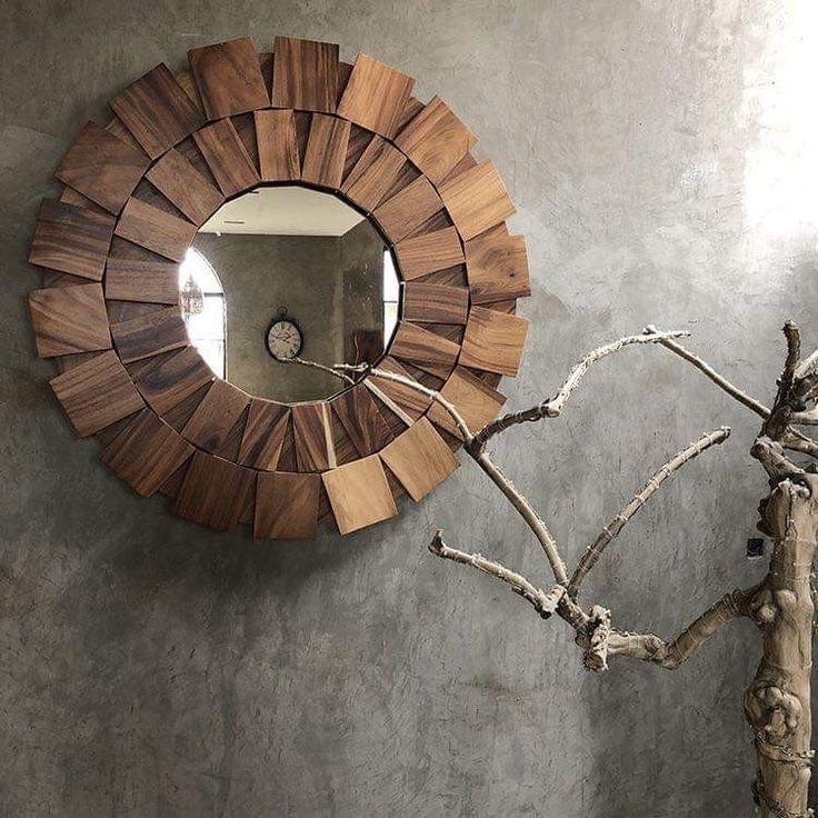 Espejo decorativo con marco de madera en diseño radial, perfecto para dar un toque elegante y moderno a cualquier espacio.